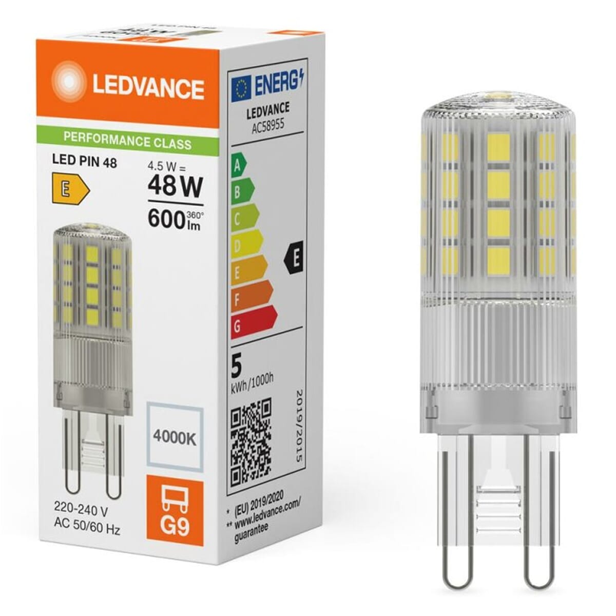 Het Ledvance LED insteeklampje G9 is een energiezuinige lichtbron die een traditionele 48W gloeilamp vervangt. Met een vermogen van slechts 4.5W levert dit lampje een helderheid van 600 lumen, ideaal voor werkverlichting in keukens, badkamers, en spiegelkasten. De neutraal witte kleurtemperatuur van 4000K zorgt voor een heldere en natuurlijke verlichting.