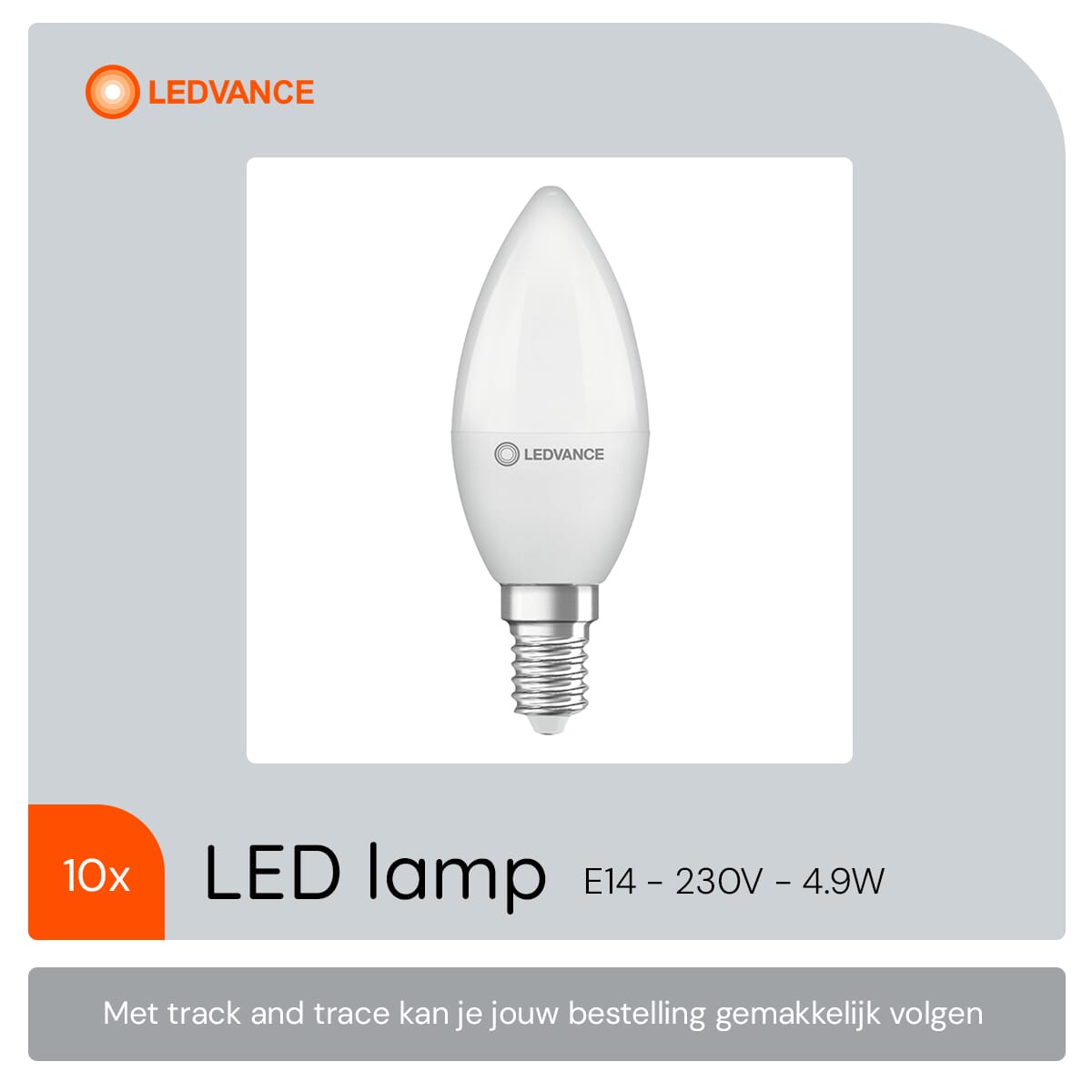 De Ledvance LED Kaarslamp E14 is een energiezuinige lichtbron die ideaal is voor gebruik in kroonluchters, bureaulampen en als sfeerverlichting. Met een vermogen van 4.9W en een lichtopbrengst van 470 lumen, biedt deze lamp een warm wit licht van 2700K. De lamp heeft een matte afwerking en een diameter van 35mm, wat zorgt voor een zachte en gelijkmatige lichtverdeling.