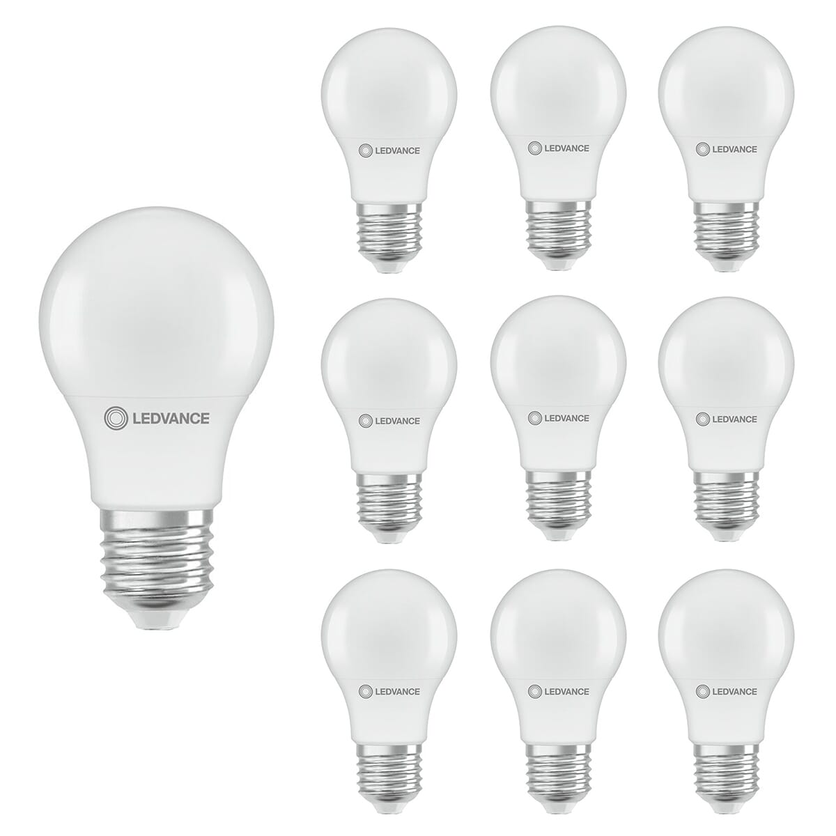 De Ledvance LED Lamp A60 E27 is een energiezuinige lichtbron die ideaal is voor gebruik in woonkamers, slaapkamers en lampenkappen. Met een vermogen van 4.9W en een lichtopbrengst van 470 lumen, biedt deze lamp een warm wit licht van 2700K. De lamp is voorzien van mat glas en heeft een diameter van 60mm. Deze set bevat 10 stuks, waardoor je meerdere ruimtes in huis kunt verlichten.