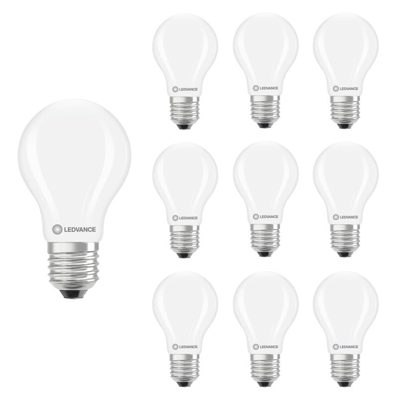 De Ledvance LED Lamp A60 Filament E27 is een energiezuinige lichtbron die ideaal is voor sfeerverlichting in diverse omgevingen. Met een vermogen van 3.4W en een lichtopbrengst van 470 lumen, biedt deze lamp een warm wit licht van 2700K. De lamp is voorzien van mat glas en heeft een diameter van 60mm. Deze dimbare LED lamp is geschikt voor gebruik in slaapkamers, horecagelegenheden en andere ruimtes waar een aangename sfeer gewenst is. De verpakking bevat 10 stuks, waardoor je meerdere ruimtes kunt verlichten.