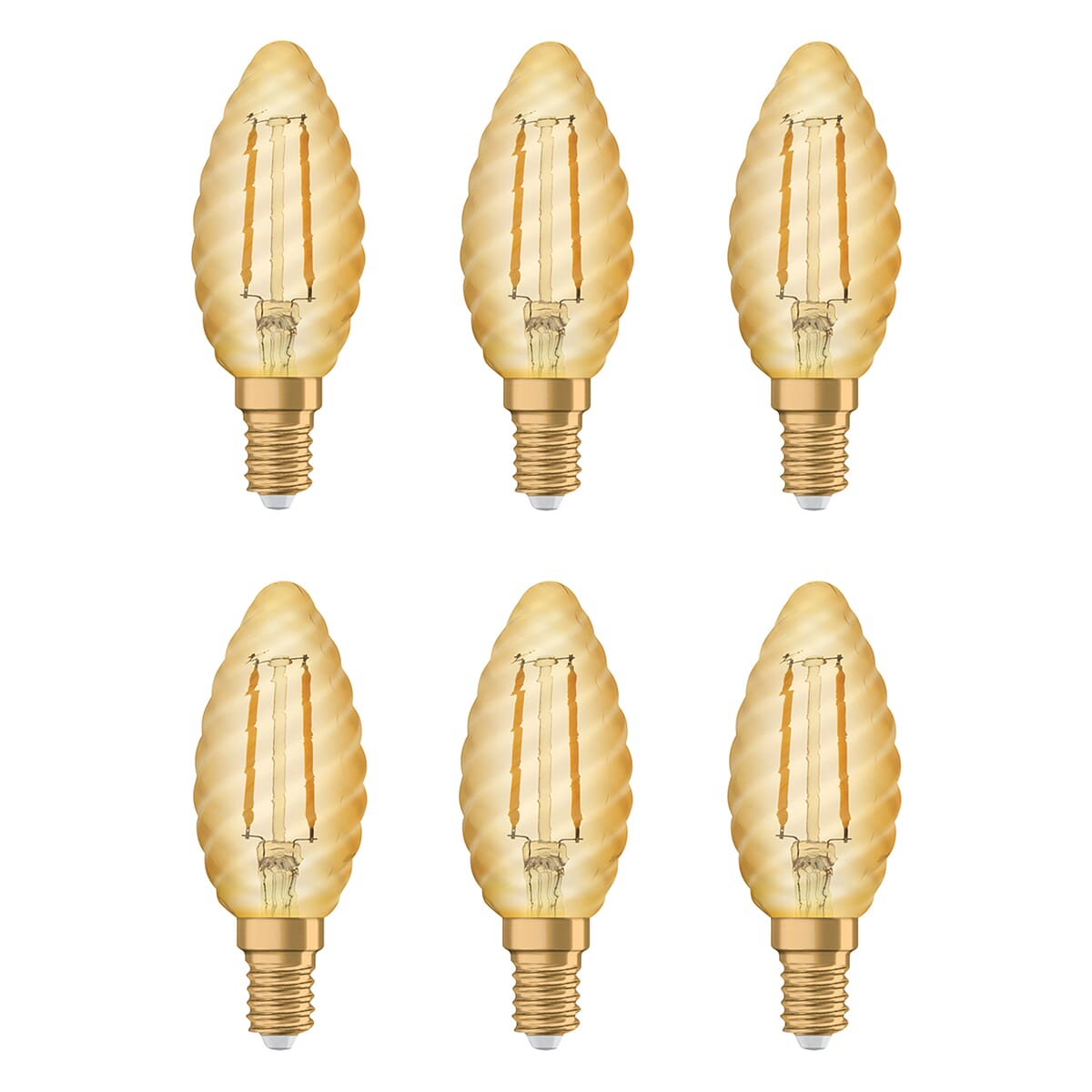 De Osram Vintage 1906 LED Kaarslamp heeft een elegant ontwerp met goudkleurig glas, waardoor het een decoratief element toevoegt aan elke ruimte. Het klassieke kaarsvormige ontwerp is ideaal voor kroonluchters en andere decoratieve armaturen.