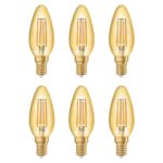 De Osram Vintage 1906 LED Kaarslamp heeft een klassiek ontwerp dat perfect past bij een vintage of retro interieur. Het goudkleurige glas voegt een vleugje elegantie toe aan elke ruimte.