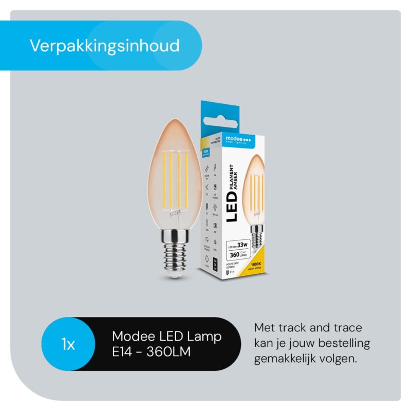 Modee E14 LED Lamp 4W – 360lm – 1800K – Warm Wit – LED Filament Amber Kaarslamp B35 – Vervangt 33W Halogeen Gloeilamp – 1 stuk