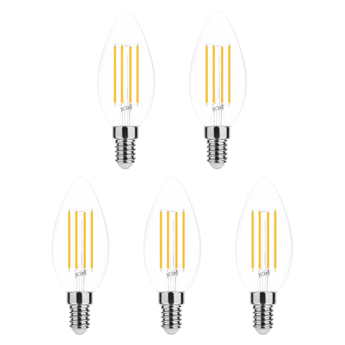 Modee E14 LED Lamp 4W – 470lm – 2700K – Warm Wit – LED Filament Kaarslamp B35 – Vervangt 40W Halogeen Gloeilamp – 5 stuks