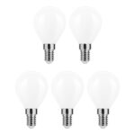 Modee E14 LED Lamp 4W – 470lm – 2700K – Warm Wit – LED Filament Melkglas Globe Mini P45 – Vervangt 40W Halogeen Gloeilamp – 5 stuks
