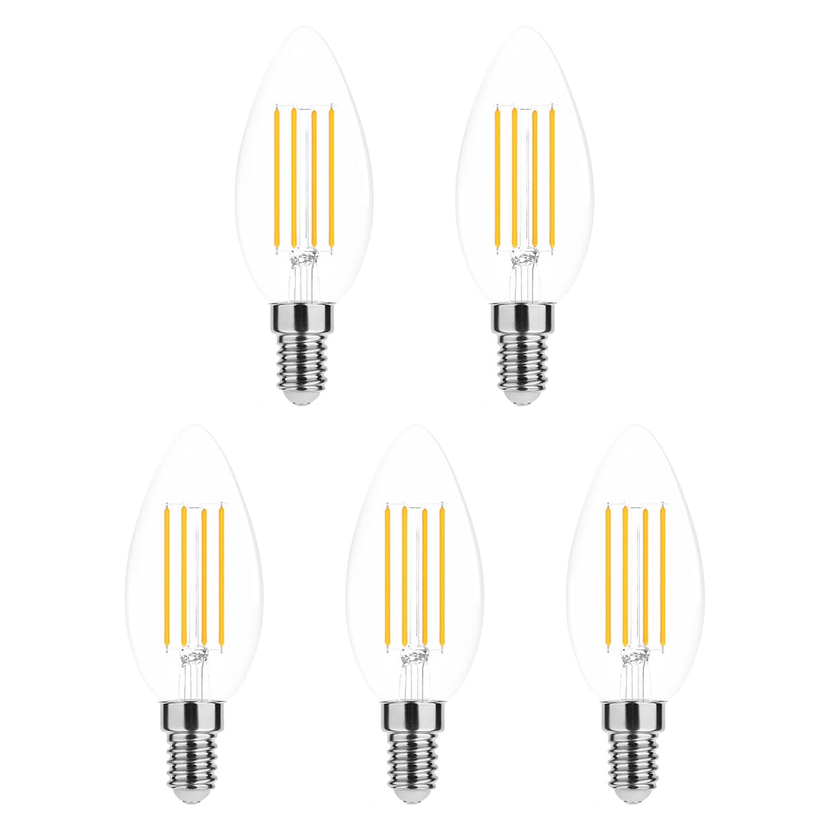 Modee E14 LED Lamp 4W – 470lm – 4000K – Neutraal Wit – LED Filament Kaarslamp B35 – Vervangt 40W Halogeen Gloeilamp – 5 stuks