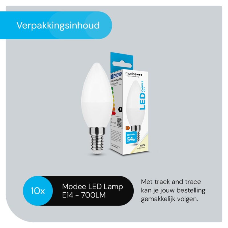 Modee E14 LED Lamp 7W – 700lm – 4000K – Neutraal Wit – LED Kaarslamp B35 – Vervangt 54W Halogeen Gloeilamp – 10 stuks