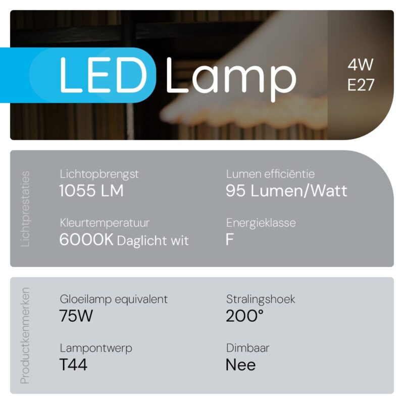 - Is deze lamp dimbaar? Nee, deze specifieke Modee E27 LED Lamp is niet dimbaar.