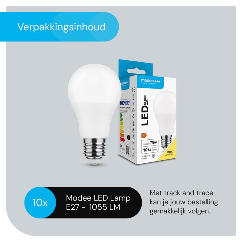 Modee E27 LED Lamp 11W – 1055lm – 2700K – Warm Wit – LED Globe A60 – Vervangt 75W Halogeen Gloeilamp – 10 stuks