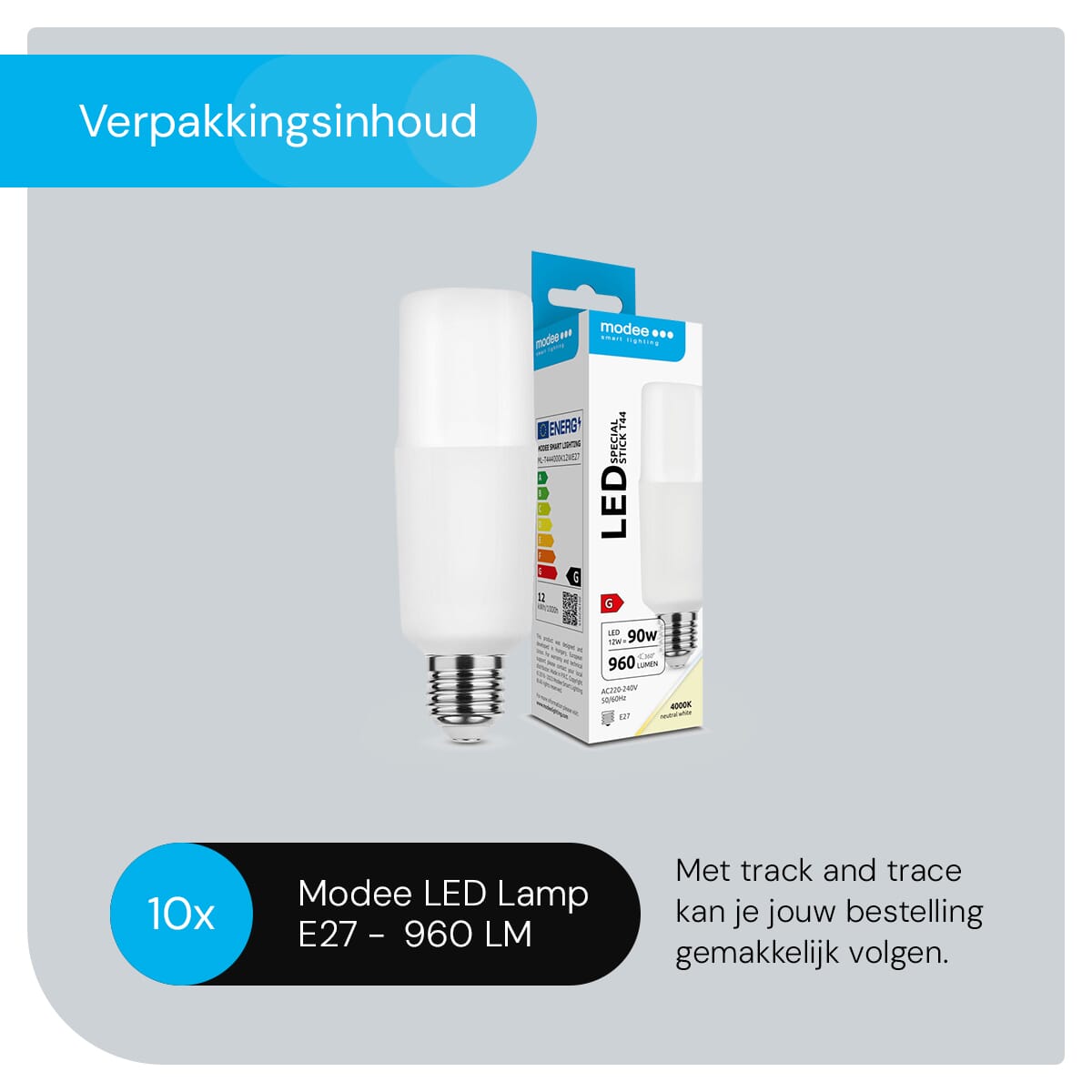 Modee E27 LED Lamp 12W – 960lm – 4000K – Neutraal Wit – LED Stick Lamp T44 – Vervangt 90W Halogeen Gloeilamp – 10 stuks