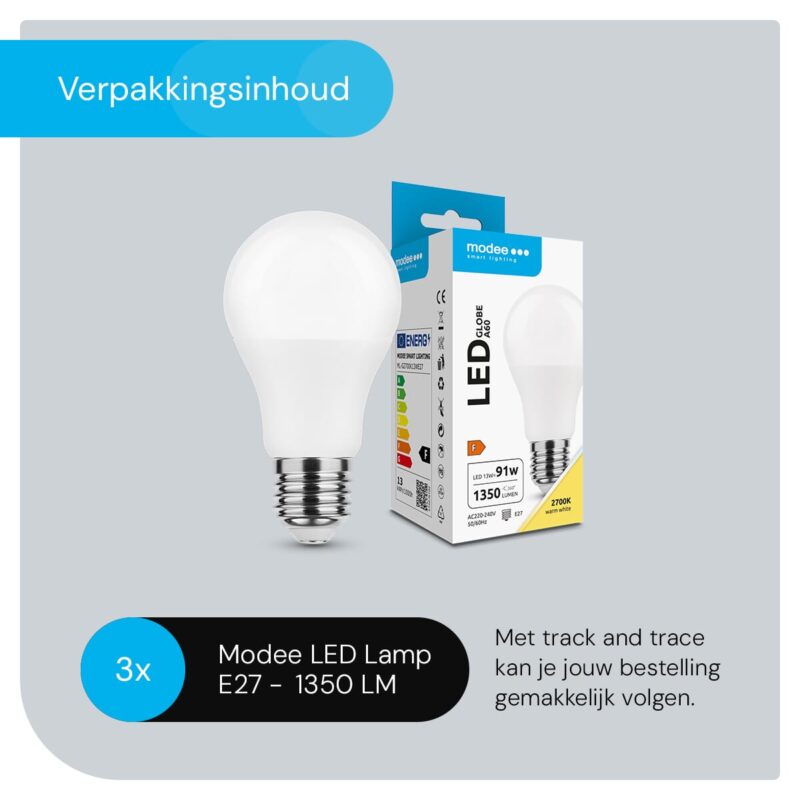 Modee E27 LED Lamp 13W – 1350lm – 2700K – Warm Wit – LED Globe A60 – Vervangt 91W Halogeen Gloeilamp – 3 stuks