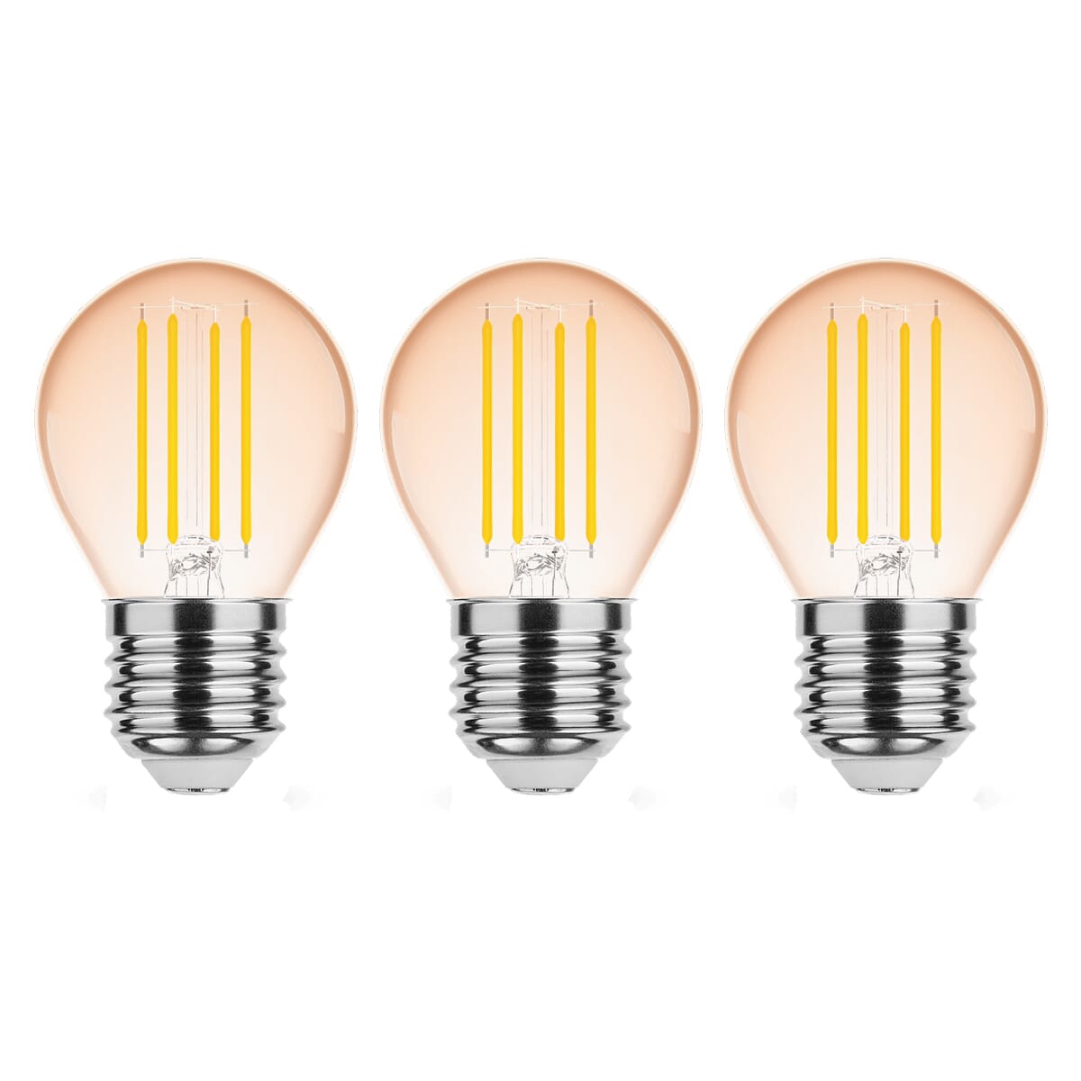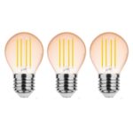 Modee E27 LED Lamp 4W – 320lm – 1800K – Warm Wit – LED Filament Amber Globe Mini P45 – Vervangt 28W Halogeen Gloeilamp – 3 stuks