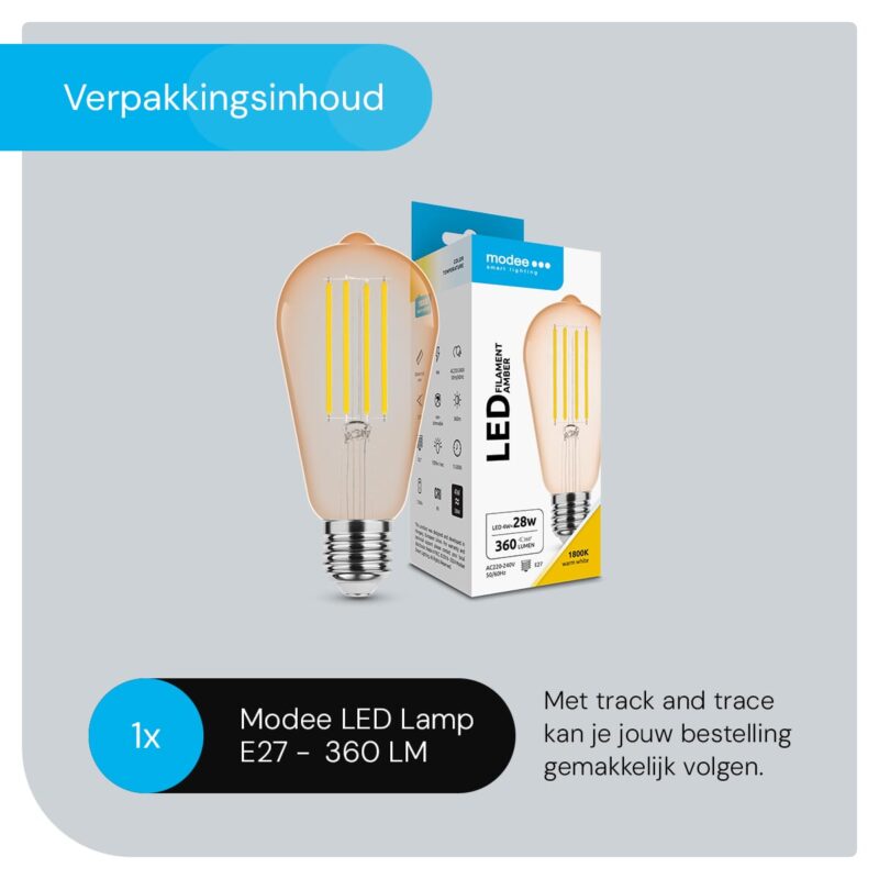 Modee E27 LED Lamp 4W – 320lm – 1800K – Warm Wit – LED Filament Amber ST64 – Vervangt 33W Halogeen Gloeilamp – 1 stuk