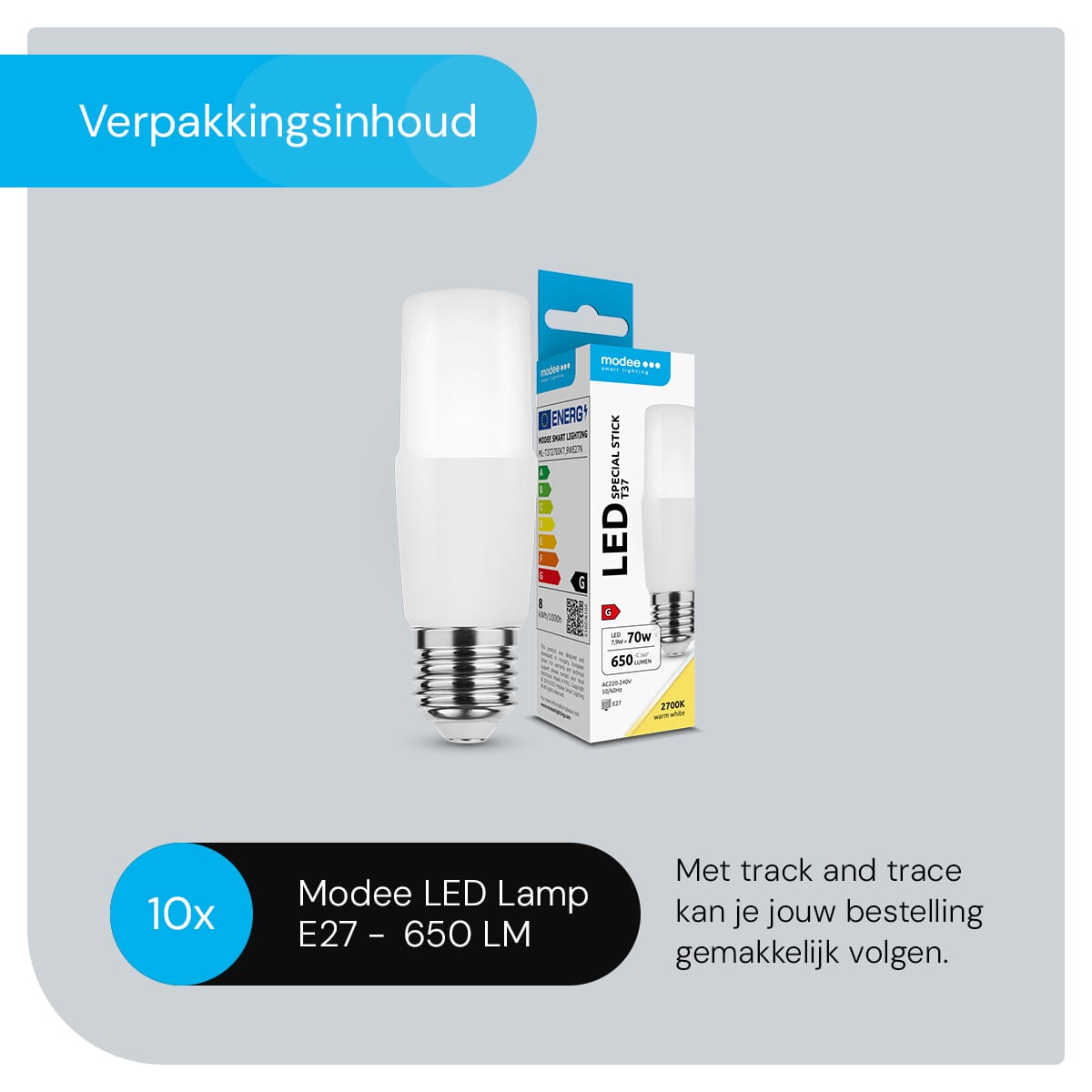 Modee E27 LED Lamp 7.9W – 650lm – 2700K – Warm Wit – LED Stick Lamp T37 – Vervangt 70W Halogeen Gloeilamp – 10 stuks