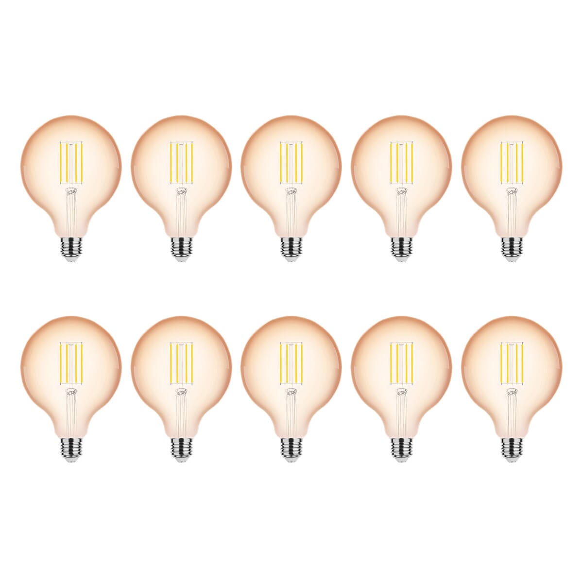 Modee E27 LED Lamp Dimbaar 4W – 300lm – 1800K – Warm Wit – LED Filament Amber Globe G125 – Vervangt 28W Halogeen Gloeilamp – 10 stuks