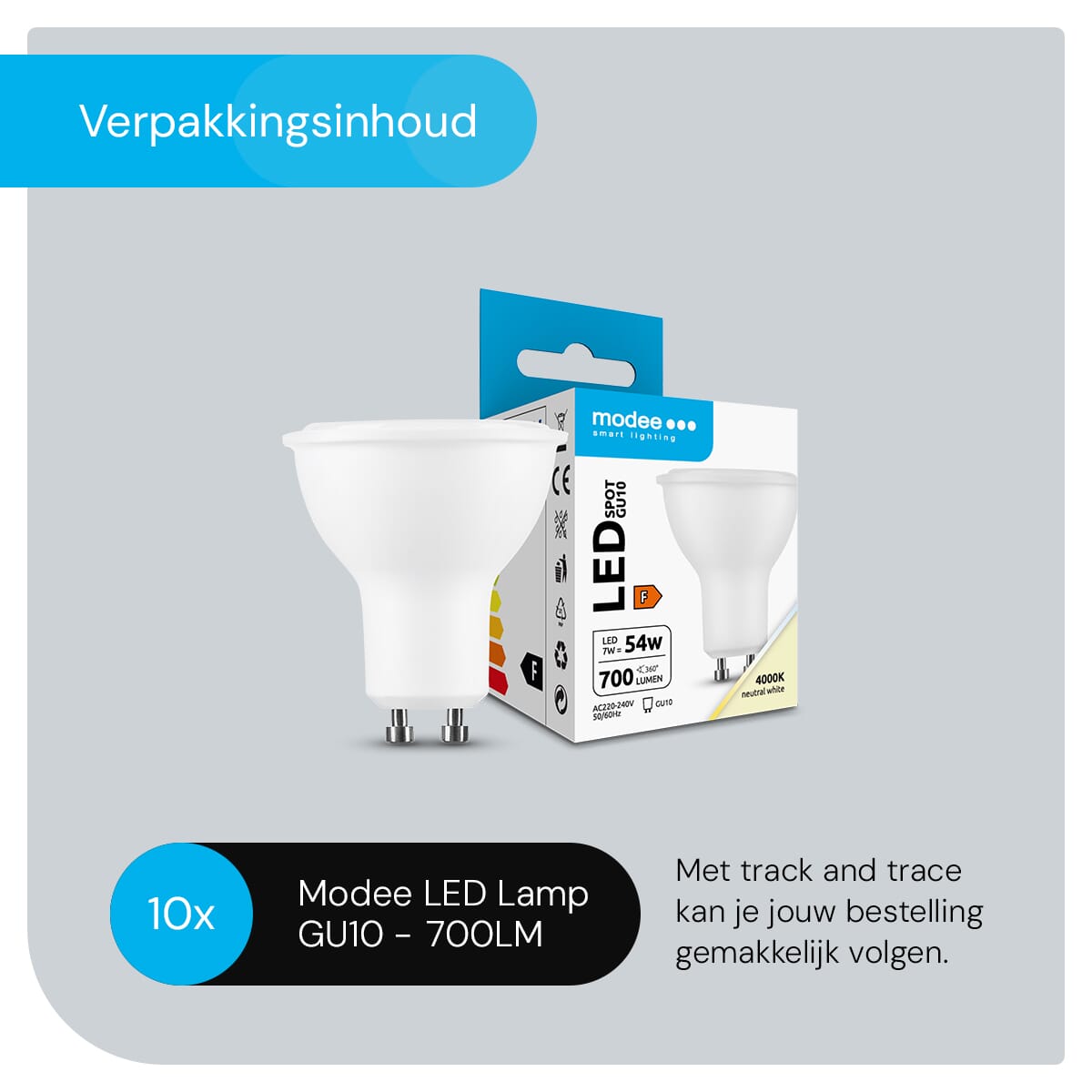 Modee GU10 LED Lamp 7W – 700lm – 4000K – Neutraal Wit – LED Spot – Vervangt 54W Halogeen Gloeilamp – 10 stuks