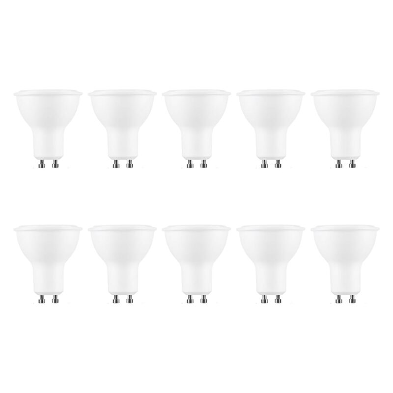 De set bevat 10 stuks van de Modee GU10 LED Lampen, waardoor je meerdere ruimtes kunt voorzien van energiezuinige verlichting.