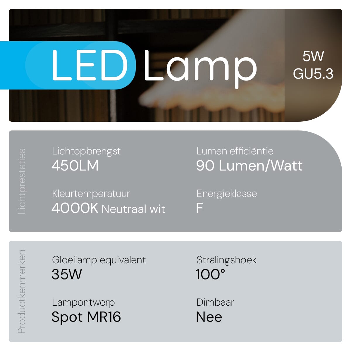 - Lichtopbrengst: 450lm