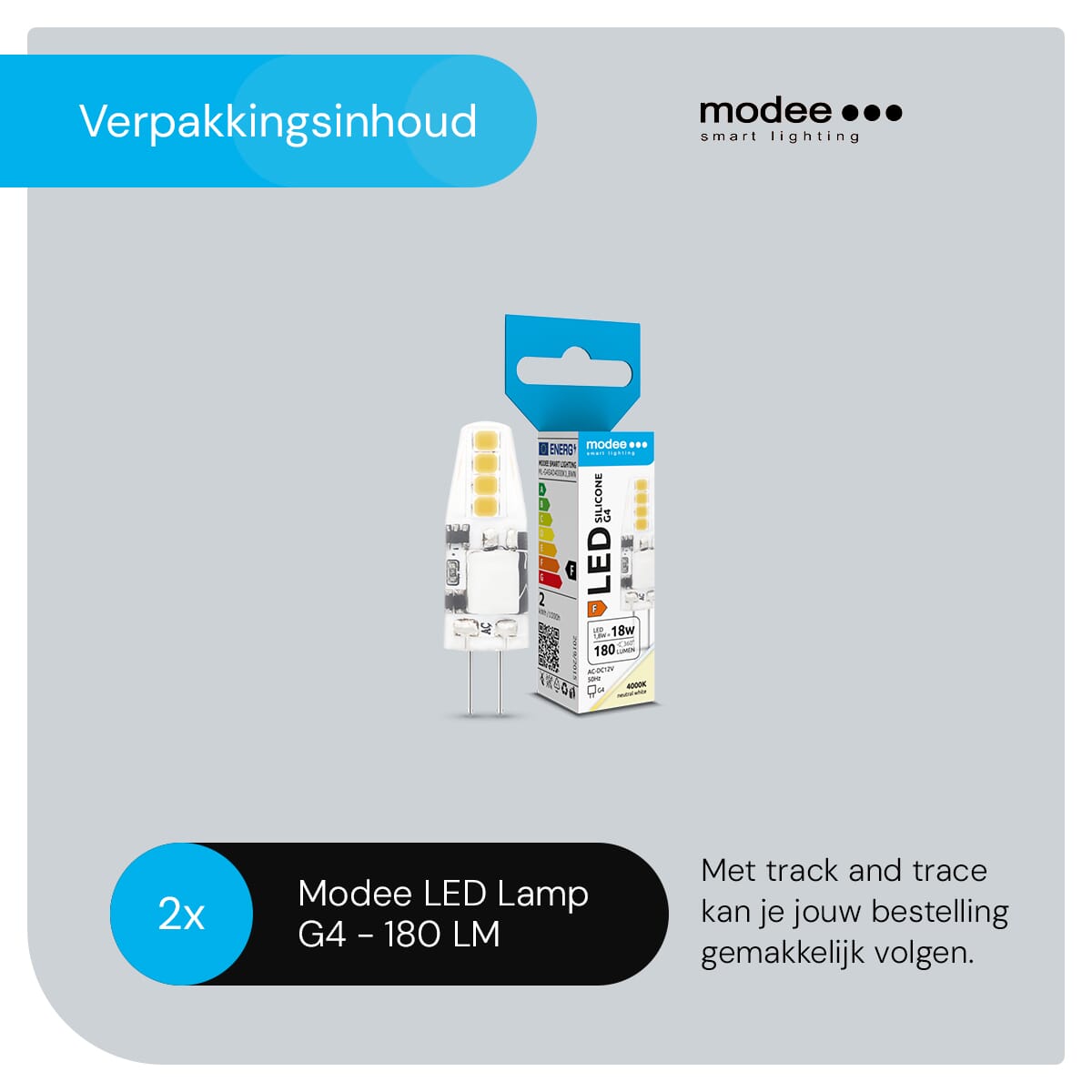 Modee LED Lamp G4 – 1.8W 4000K 180 LM 12V – LED Lamp insteek – Wit Licht – 2 stuks