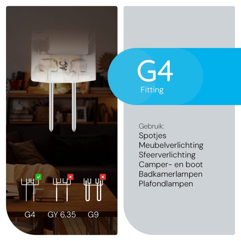 De Modee LED Lamp G4 is eenvoudig te installeren dankzij de G4 insteekfitting. Sluit de lamp aan op een 12V stroombron en geniet direct van helder, Daglicht wit licht. De lamp is compatibel met de meeste standaard G4 fittingen, waardoor vervanging van oude halogeenlampen een fluitje van een cent is.