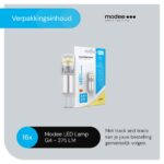 De Modee LED Lamp G4 is eenvoudig te installeren dankzij de insteekvoet. Sluit de lamp aan op een 12V stroombron en geniet direct van helder en warm wit licht. Deze lampen zijn compatibel met de meeste G4 fittingen, waardoor ze veelzijdig inzetbaar zijn.