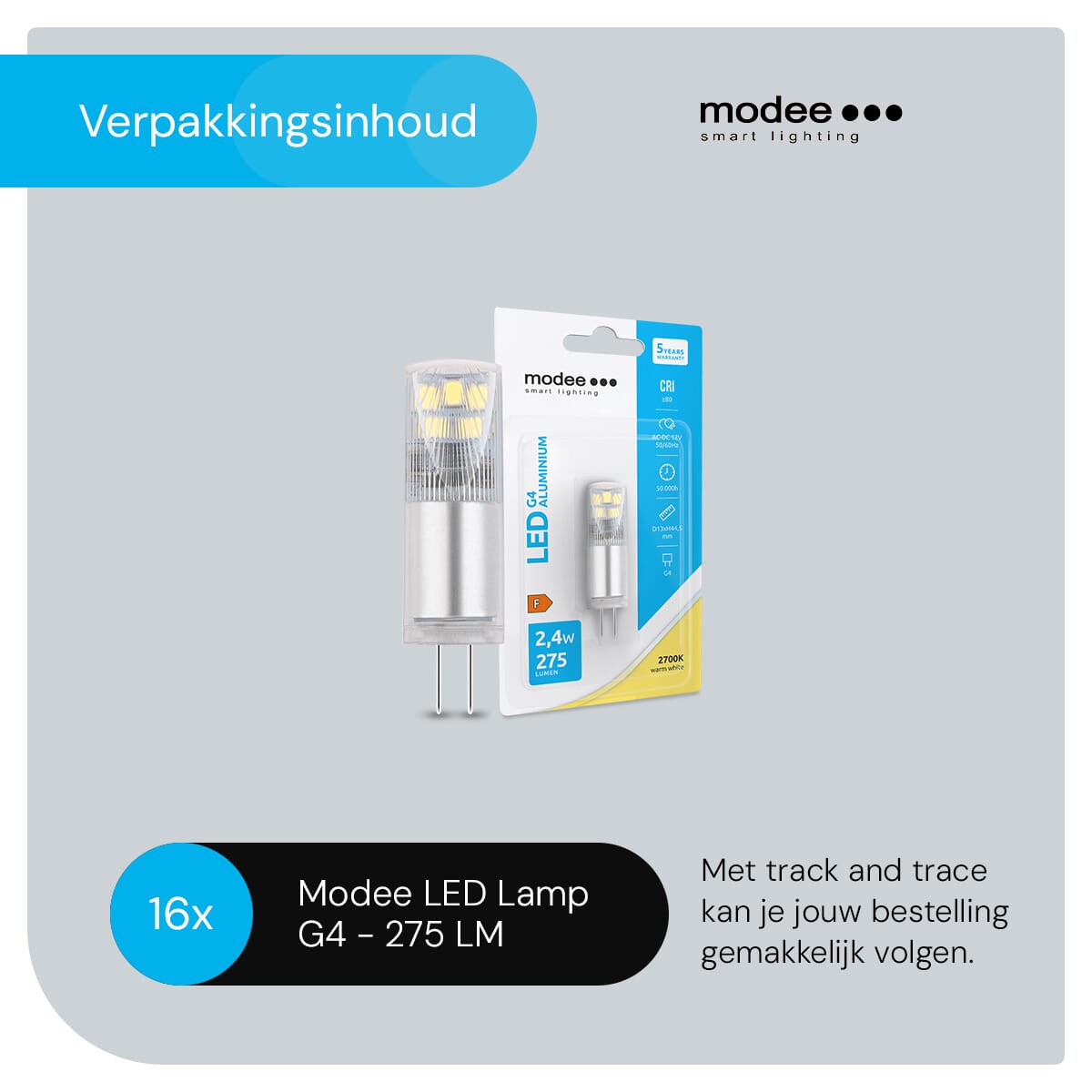 Modee LED Lamp G4 – 2.4W 2700K 275 LM 12V – LED Lamp insteek – Warm Wit – 16 stuks