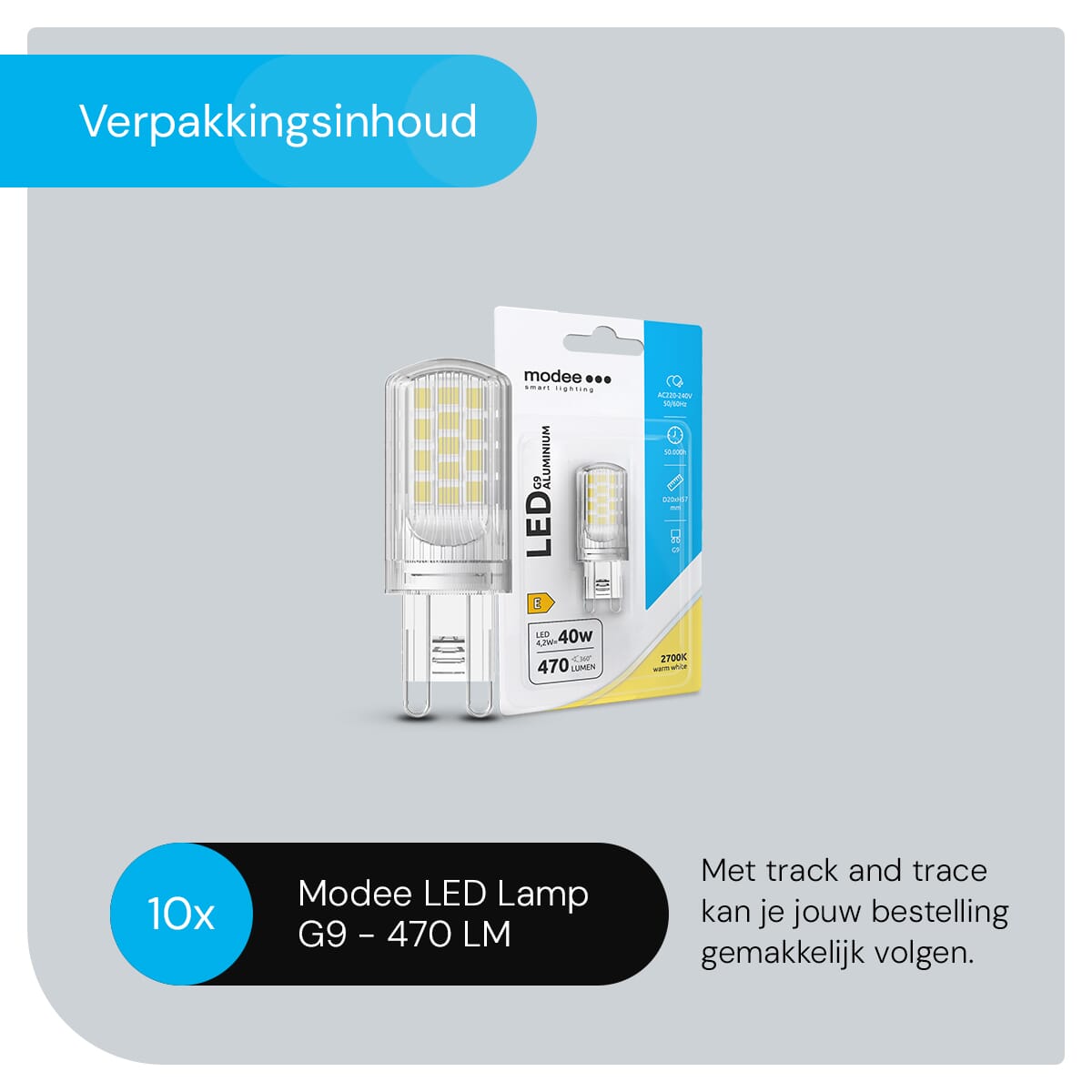 - Hoeveel lampen zitten er in een verpakking? Deze set bevat 10 stuks Modee LED Lampen G9.