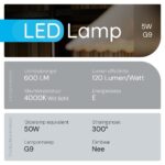 De Modee LED Lamp G9 biedt een kleurtemperatuur van 4000K en een lichtopbrengst van 600 lumen. Dit zorgt voor een aangename en heldere verlichting die perfect is voor zowel werk- als woonruimtes.