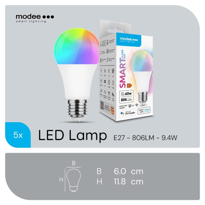 Modee Smart E27 Ledlamp met RGB en Kleurtemperaturen 5 Stuks