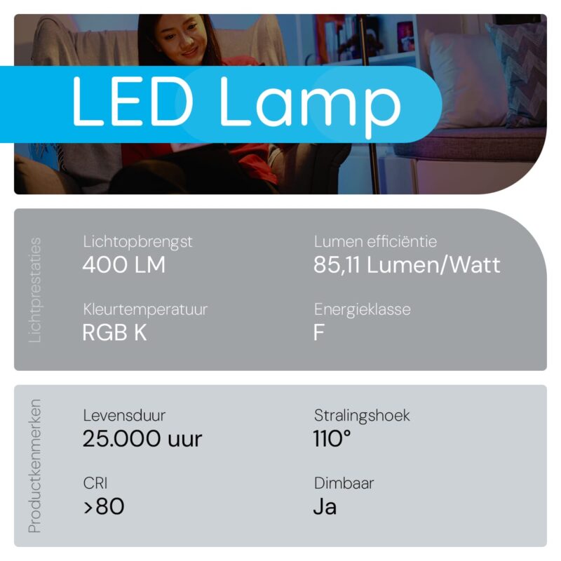 - Personalisatie: Kies uit 16 miljoen kleuren en pas de kleurtemperatuur aan van 2700K tot 6000K voor de perfecte ambiance.
