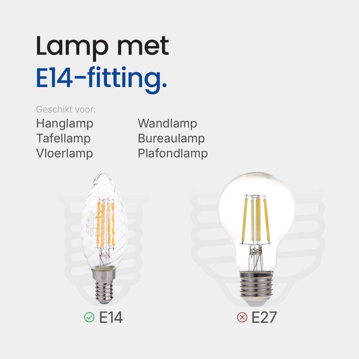 De E14 fitting maakt deze lamp compatibel met een breed scala aan armaturen, waardoor het een veelzijdige keuze is voor verschillende verlichtingsbehoeften in huis.