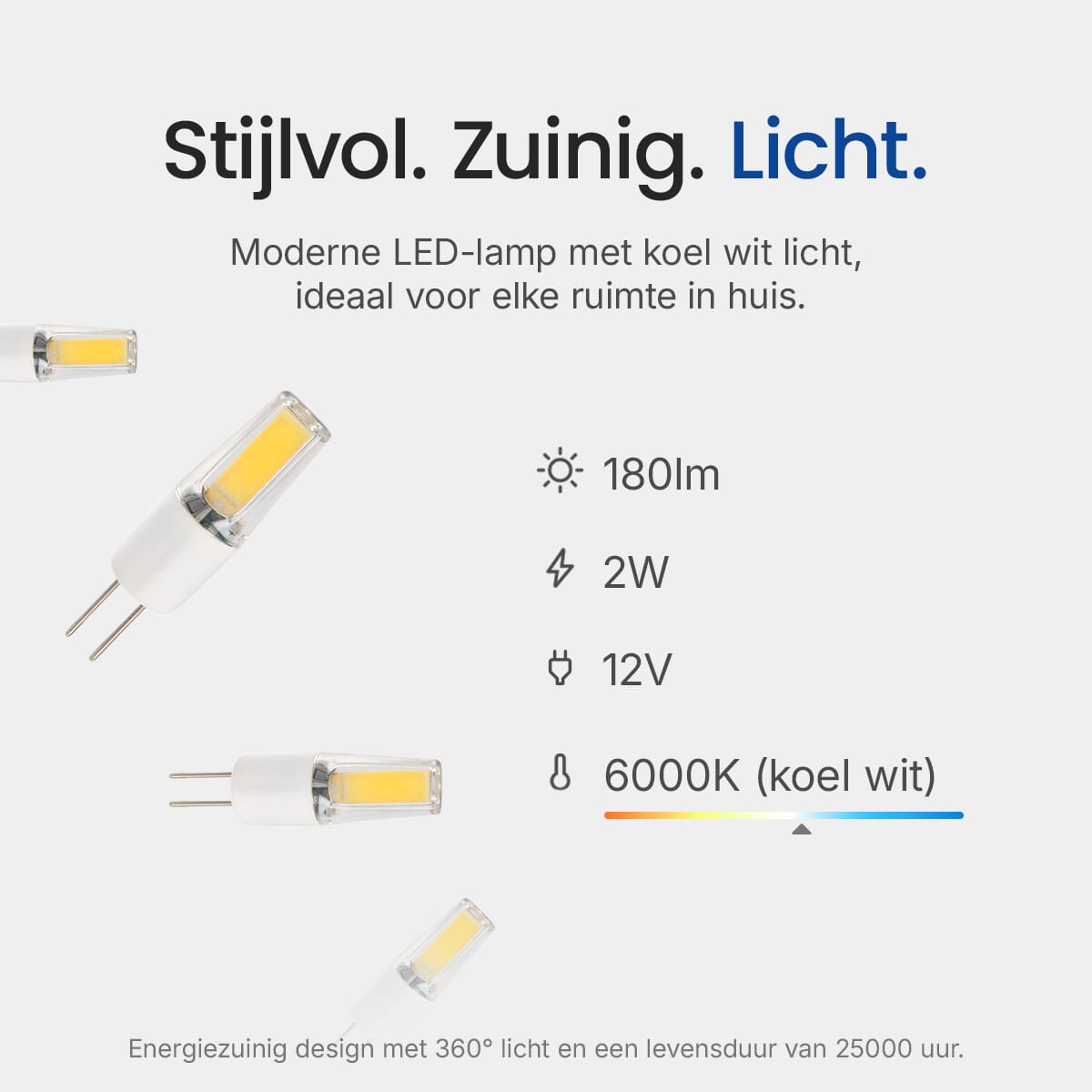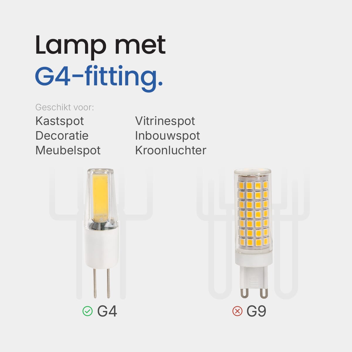 De lamp werkt op een spanning van 12V en is eenvoudig te installeren in G4-fittingen. Het insteekontwerp maakt het gemakkelijk om de lamp te vervangen zonder extra gereedschap.