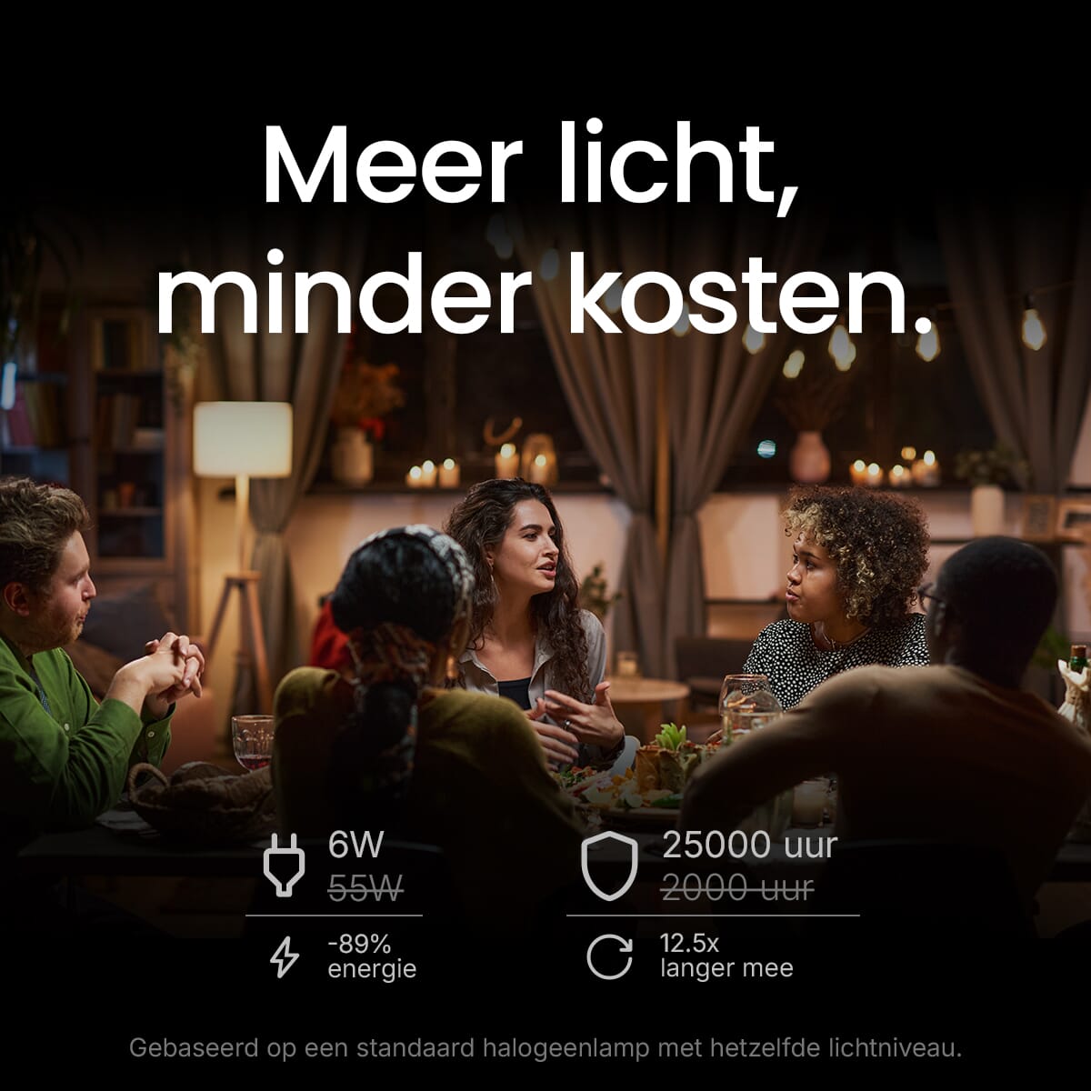 - Vermogen: 6W (vervangt 60W)