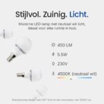 Met een lichtopbrengst van 450 lumen en een kleurtemperatuur van 4500K, biedt deze LED lamp een helder en neutraal wit licht. Dit maakt het ideaal voor ruimtes waar helder en natuurlijk licht gewenst is, zoals keukens en werkruimtes.