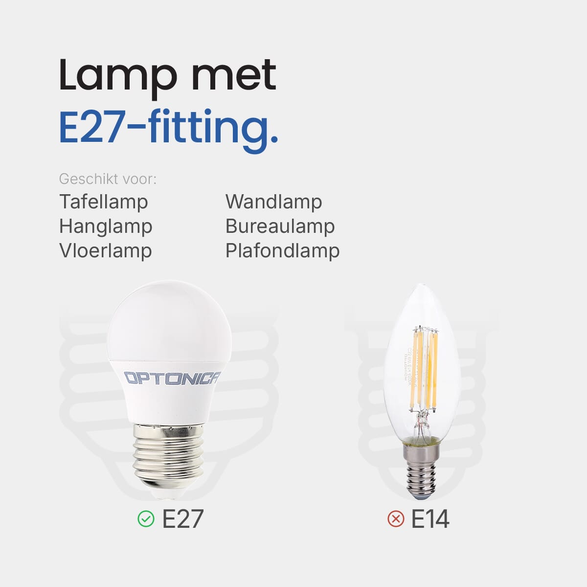 De lamp is voorzien van een E27 fitting, wat zorgt voor een eenvoudige installatie in de meeste standaard armaturen. Dit maakt het vervangen van oude lampen snel en probleemloos.