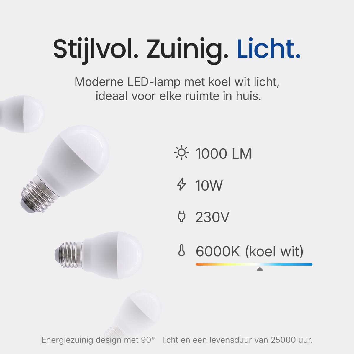 - Kleurtemperatuur: 6000K (Koel Wit)
