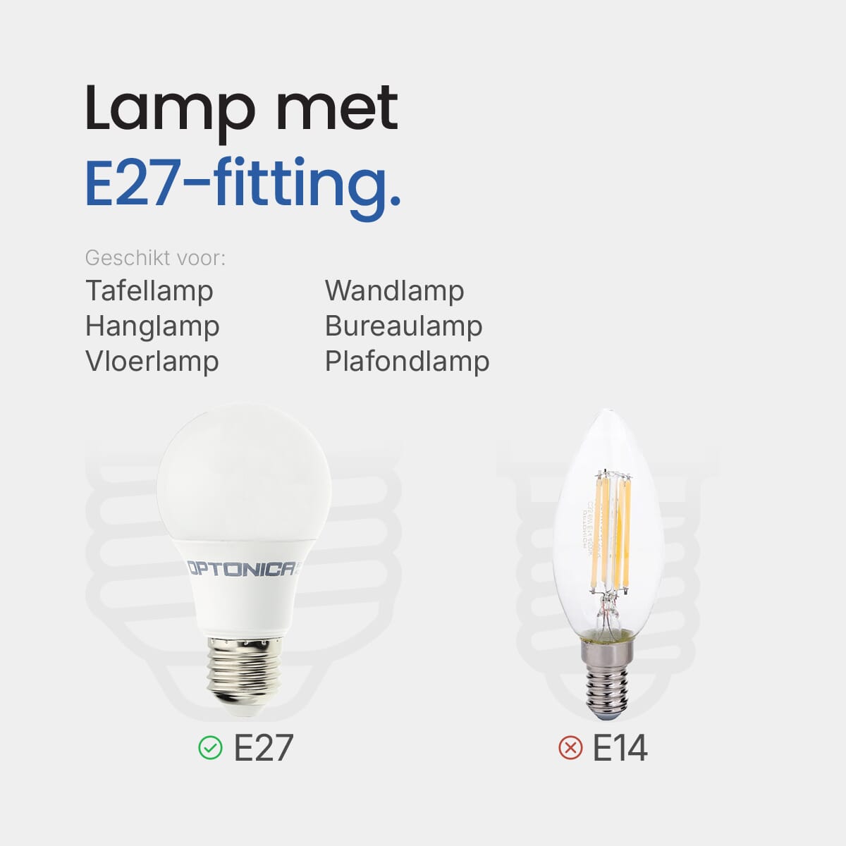 De lamp is voorzien van een E27 fitting, wat betekent dat hij eenvoudig in de meeste standaard armaturen kan worden geschroefd. Dit maakt de installatie snel en probleemloos.