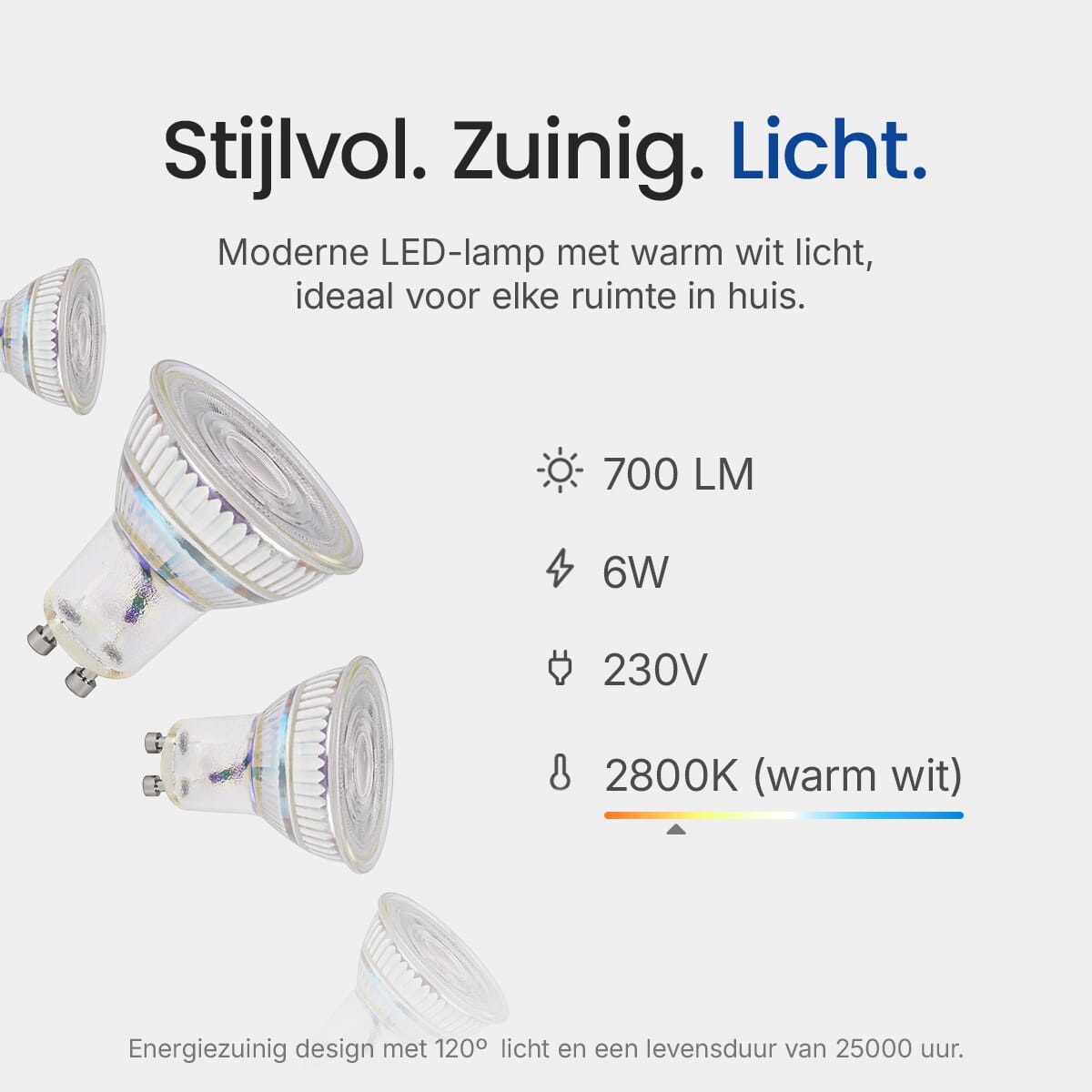 - Kleurtemperatuur: 2800K Warm Wit
