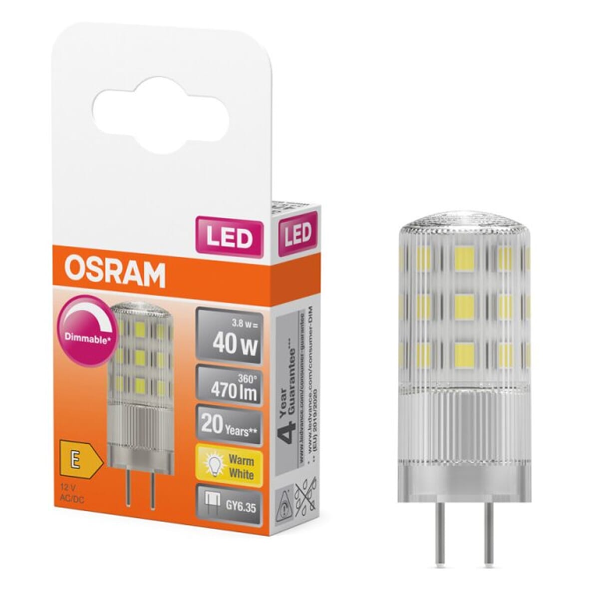 De Osram LED GY6.35 Insteeklampje is een energiezuinige lichtbron die een traditionele 40W halogeenlamp vervangt. Met een vermogen van 4.5W levert deze LED-lamp een helderheid van 470 lumen en een warme kleurtemperatuur van 2700K. Deze lamp is geschikt voor gebruik in diverse armaturen die een GY6.35 fitting vereisen, zoals inbouwspots en decoratieve verlichting.