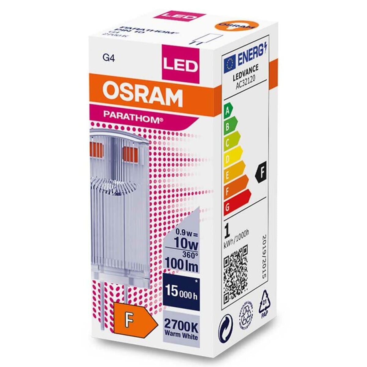 De Osram LED G4 Lamp is een energiezuinige lichtbron die ontworpen is om traditionele 10W halogeenlampen te vervangen. Met een verbruik van slechts 0.9W biedt deze lamp een lichtopbrengst van 100 lumen. De lamp is geschikt voor gebruik in diverse armaturen die een G4 fitting vereisen, en werkt op een spanning van 12V. De kleurtemperatuur van 2700K zorgt voor een warm wit licht, ideaal voor sfeerverlichting in woonruimtes.