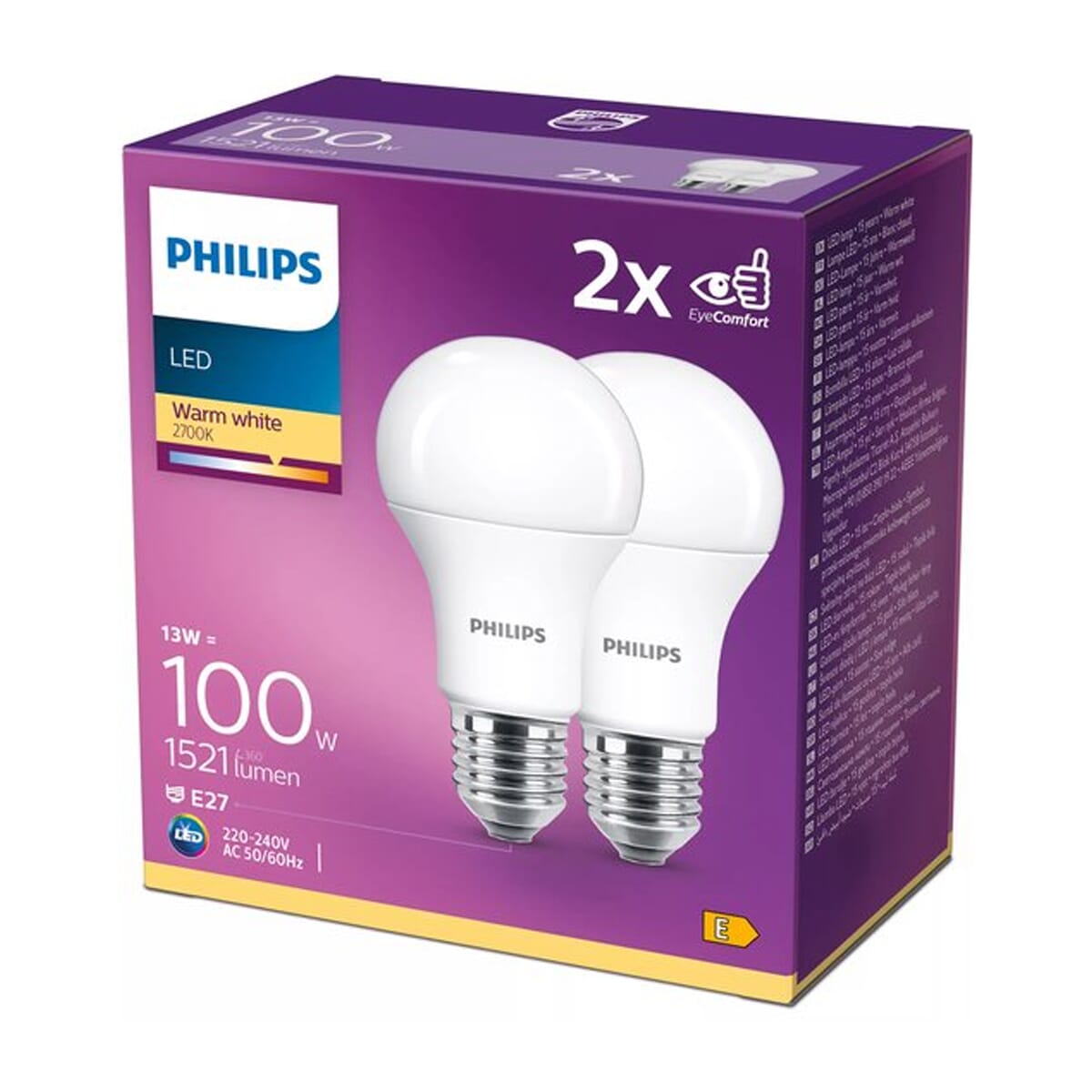 Philips CorePro LEDbulb A60 E27 13W 2700K 1521lm 230V – 2-Pack – Warm Wit
