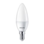 De Philips LED Kaarslamp verbruikt slechts 5W, wat aanzienlijk minder is dan de traditionele 40W gloeilampen. Dit maakt het een milieuvriendelijke keuze die helpt om energiekosten te verlagen.