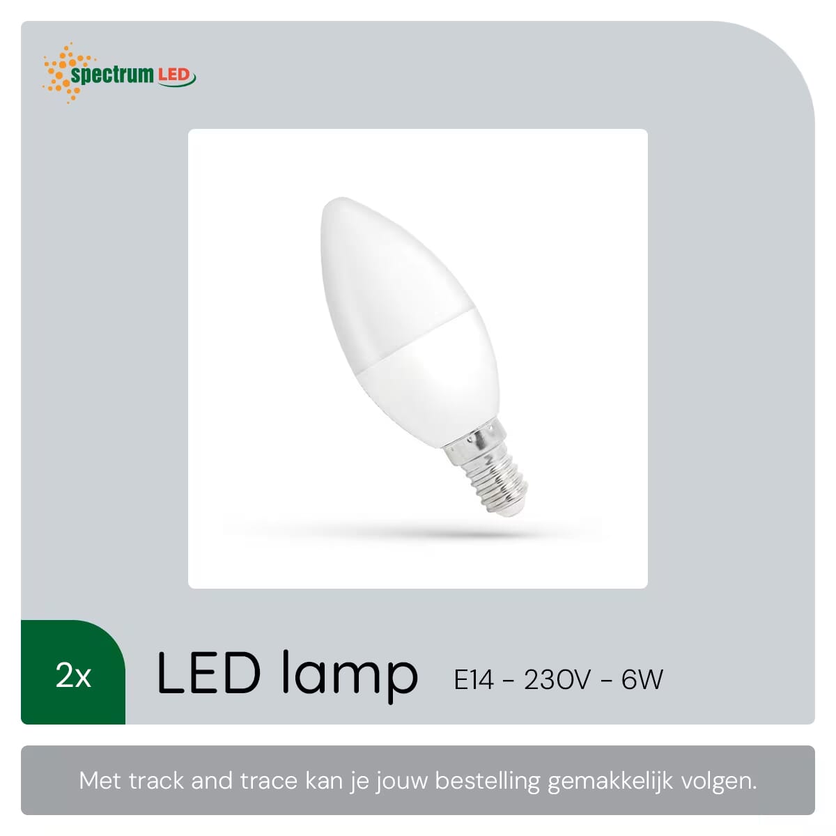 Spectrum Dimbare LED Lamp E14 6W – 230V – 520 Lumen – 6000K Koud wit – 2 stuks