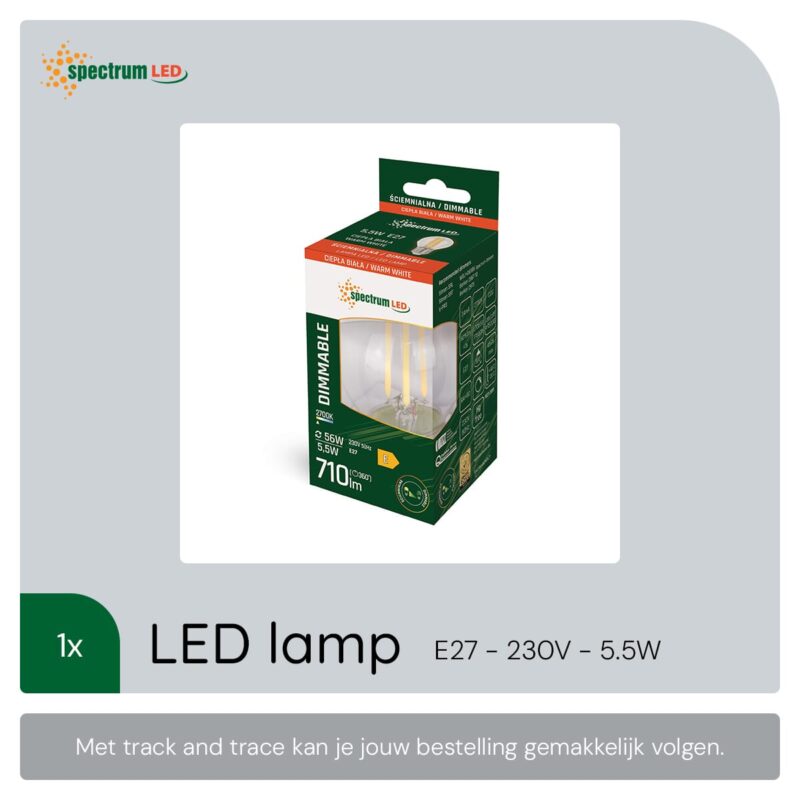 Breng sfeer en efficiëntie samen in je huis met de Spectrum Dimbare LED Lamp E27 5.5W en geniet van een warme, uitnodigende verlichtingservaring.