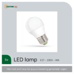 - Hoeveel lampen zitten er in een verpakking? Deze set bevat 5 stuks, ideaal voor meerdere kamers of armaturen.