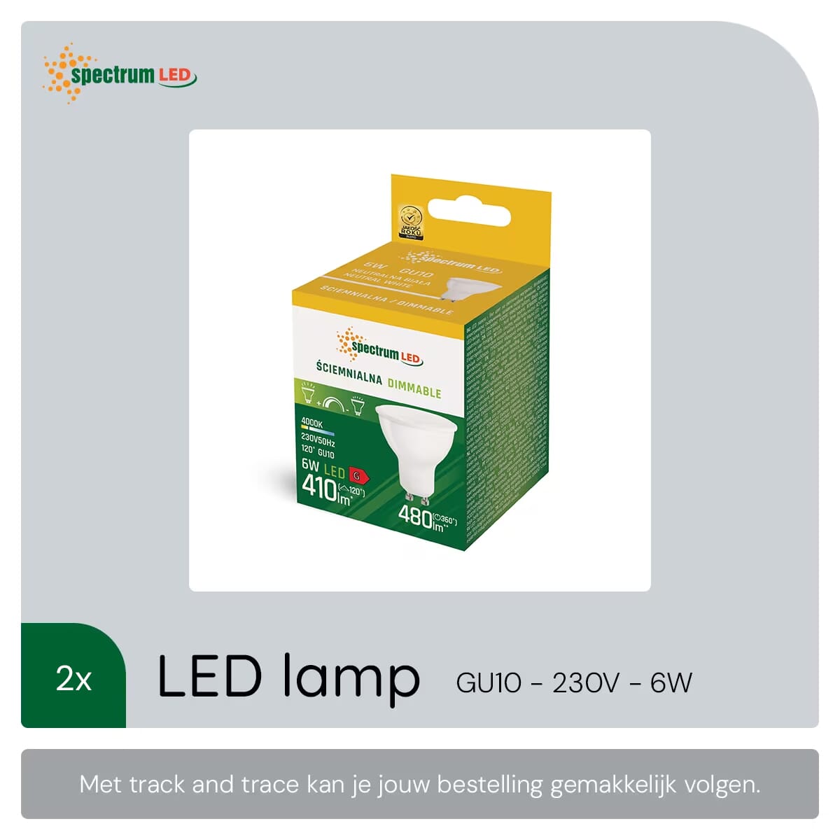 Spectrum Dimbare LED Lamp GU10 6W – 230V – 480 Lumen – 4000K Neutraal Wit – 2 stuks