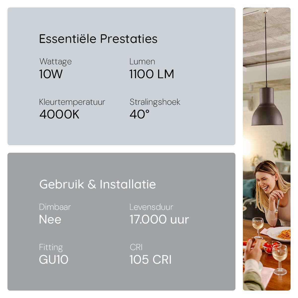 - Helder en Natuurlijk Licht: De 4000K neutraal witte kleurtemperatuur zorgt voor een aangename en natuurlijke verlichting die perfect is voor elke ruimte.