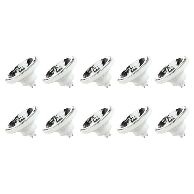 De Spectrum GU10 LED Spot AR111 combineert energie-efficiëntie met krachtige verlichting. Met een verbruik van slechts 10 Watt en een output van 800 Lumen, krijg je helder en effectief licht zonder onnodige energiekosten.