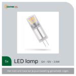 - Hoeveel lampjes zitten er in een verpakking? De verpakking bevat 5 stuks.