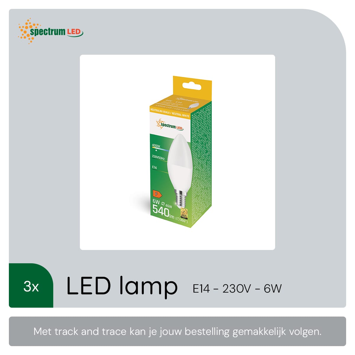 Spectrum LED Kaarslamp E14 6W – 230V – 540 Lumen – 4000K Neutraal Wit